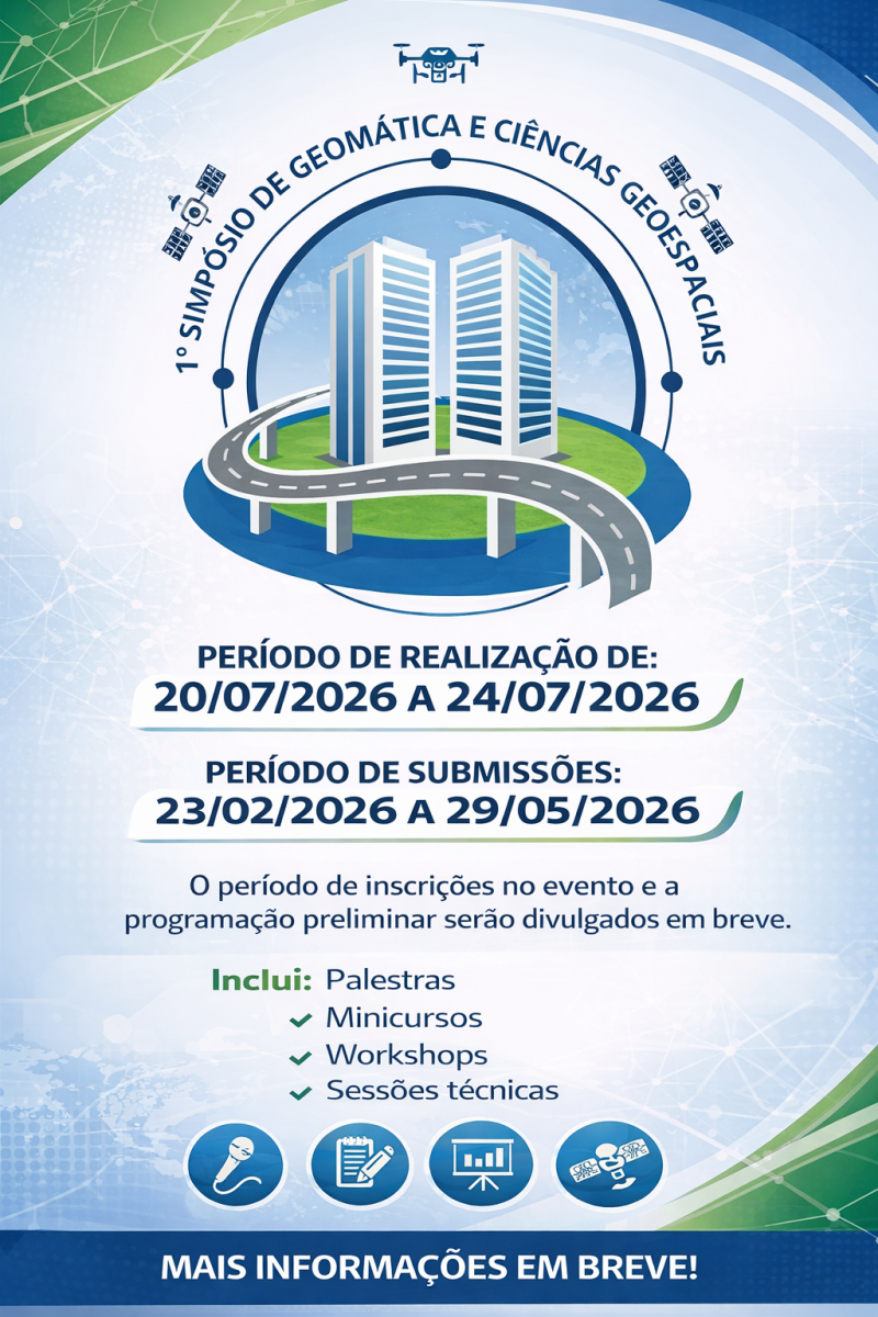 O evento busca fomentar a produção científica, a troca de experiências e a difusão do conhecimento aplicado ao território, reunindo contribuições que dialoguem tanto com as Geotecnologias quanto com as diferentes áreas da Engenharia Civil, como Infraestrutura, Transportes, Geotecnia, Estruturas, Planejamento Urbano e Gestão Ambiental.